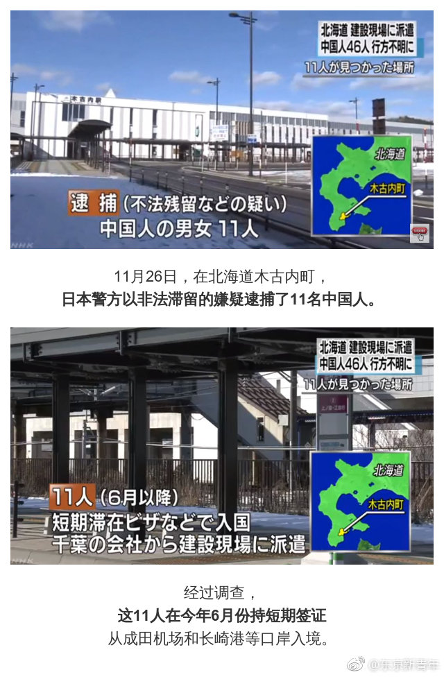 46名中国人在日本北海道集体失踪 另有11名被捕 木古