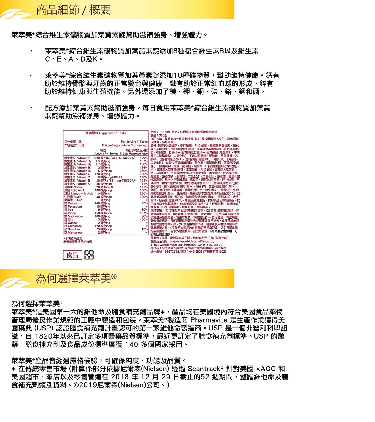 Nature Made 萊萃美綜合維生素礦物質加葉黃素錠 食品 300錠 Costco 好市多線上購物