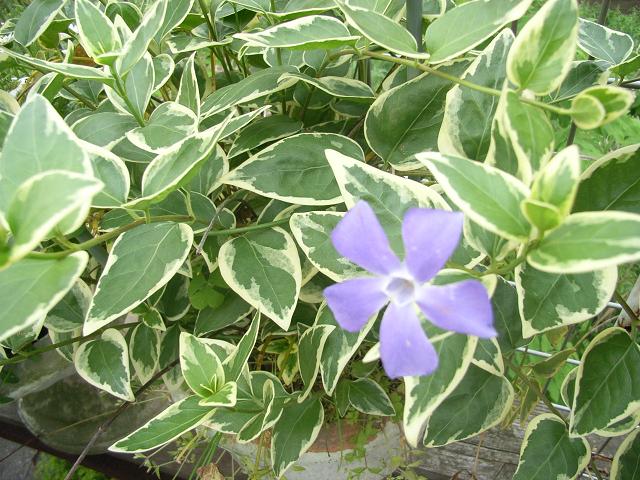 縁の白い葉に薄紫の花 はなせんせ