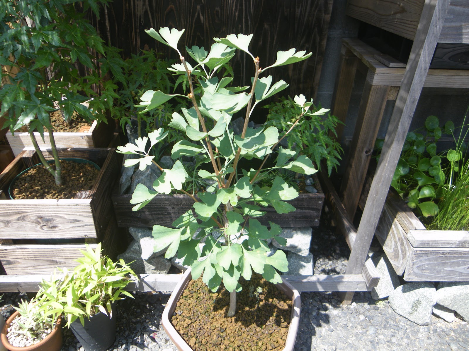イチョウの鉢植え 3年目で枝がたくさん増えました メダカの大工