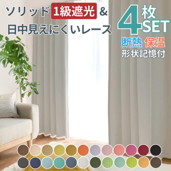 ソリッド1級遮光カーテン レースカーテン4枚組 Uvカット ミラー N400019 Curtain Rainbow 通販 Yahoo ショッピング