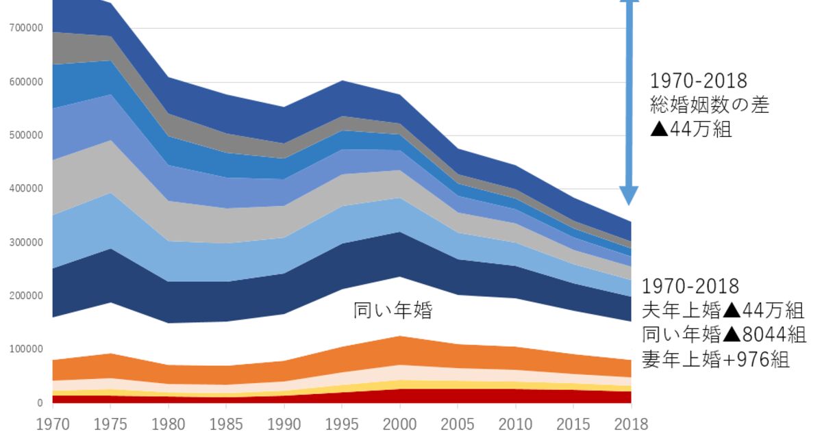日本の婚姻数減少はほぼ全て 夫年上婚の減少 で 同い年や妻が年上の婚姻数は変化無しというデータに様々な意見が集まる Togetter